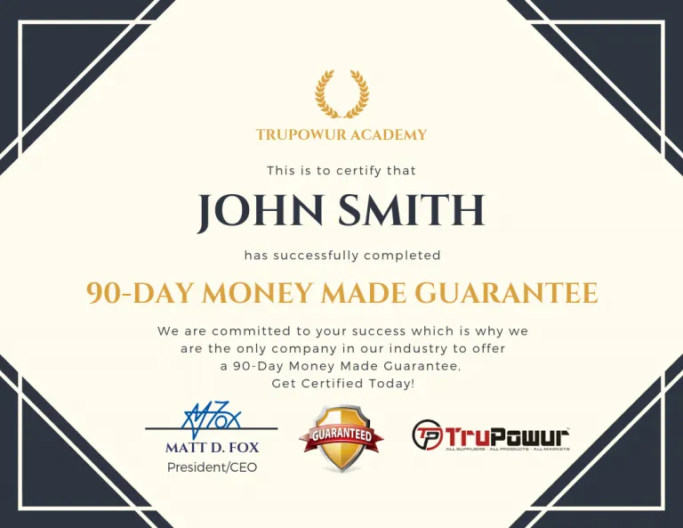 After joining TruPowur with our BROKER Platform License and having completed ALL of your Initial Onboarding and Training, you’ll be automatically enrolled in our 90-Day Money-Made Guarantee—no additional registration is required.